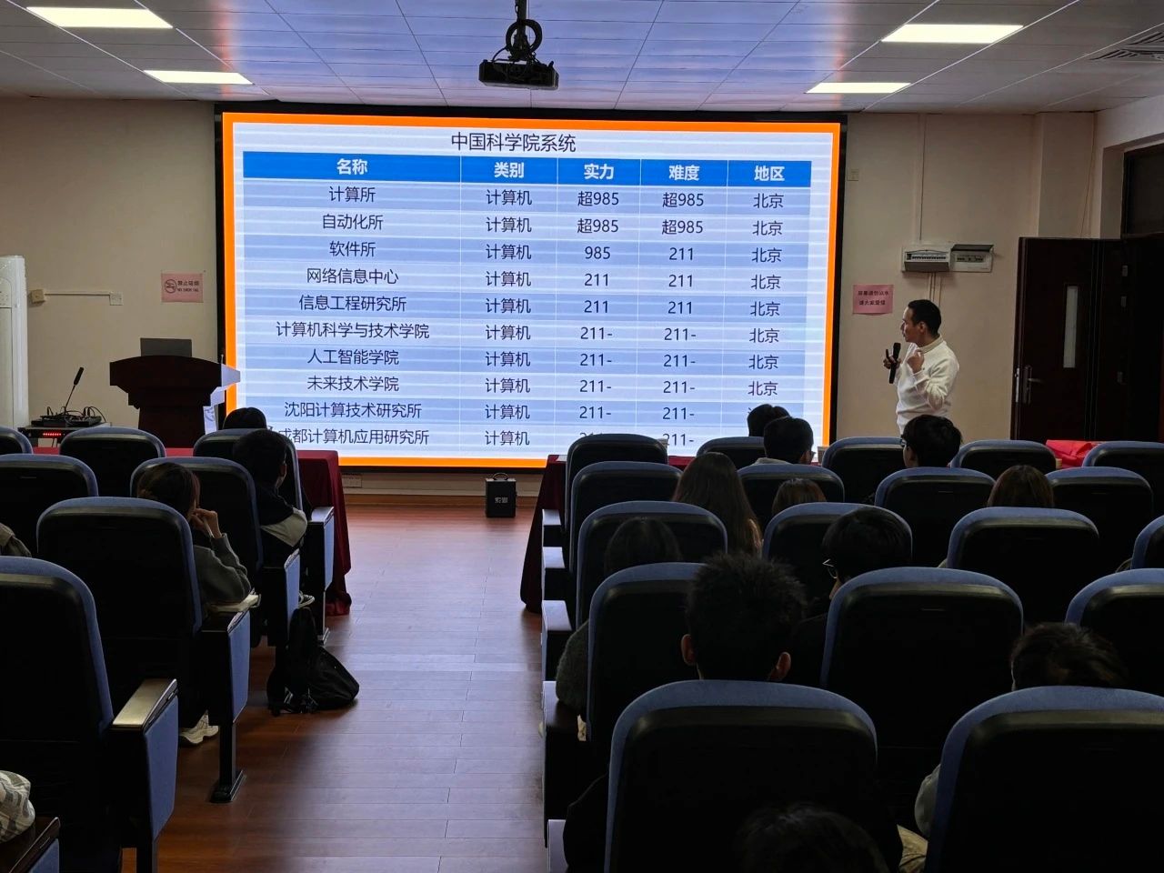 10 月 20 日,我院专为备战考研的学子打造的 “408 专业课高效复习策略暨报考院校科学选择” 专题讲座顺利举行。本次讲座特别邀请到中科院计算所博士、郑州大学博士后刘财政担任主讲嘉宾,详实的内容与专业的指导吸引了全院 100 余名有志于考研的学生到场聆听、交流。