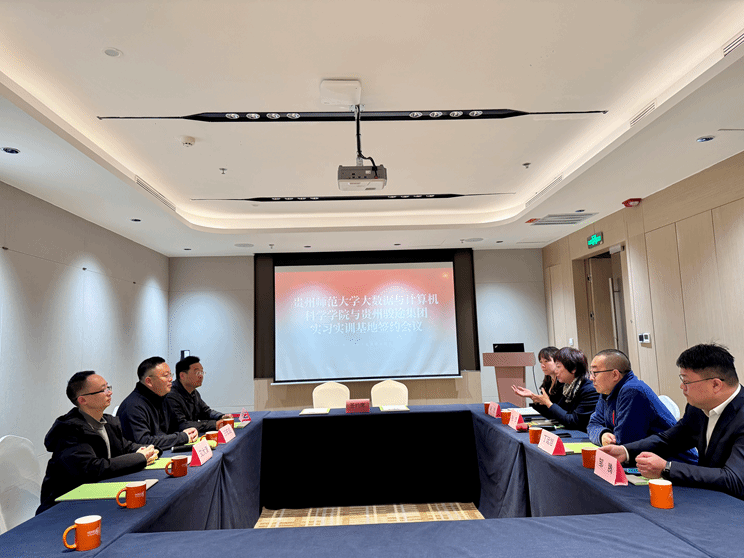 随后,贵州骏途相关负责人分别就公司在数字化管理、智能系统开发、人才培养与员工职业发展通道建设等方面进行了分享,并展示了线上平台建设成果以及部分已落地的企业服务案例。张萍董事长表示,愿与学院在技术研发、项目共建等方面开展深度合作。
