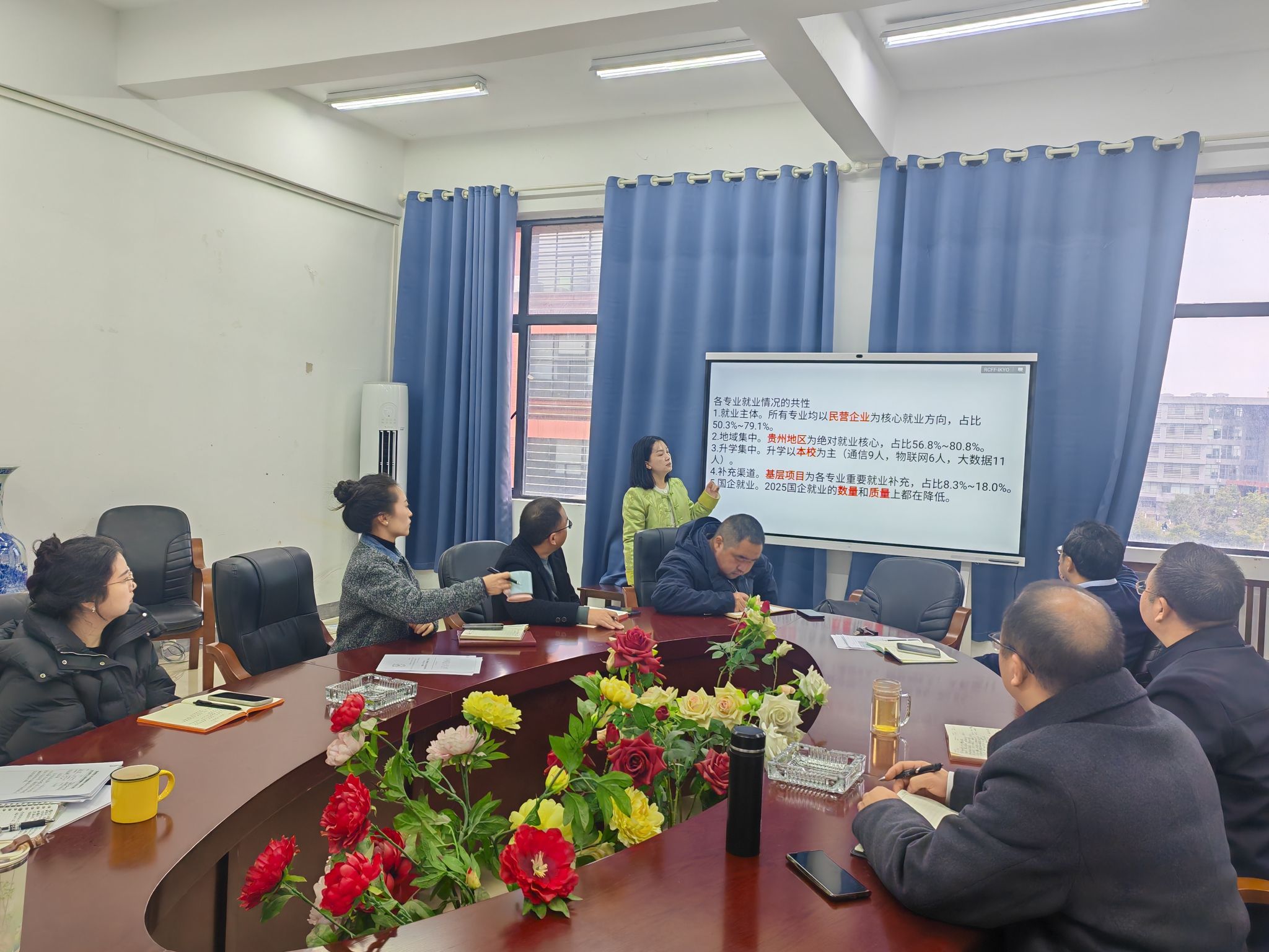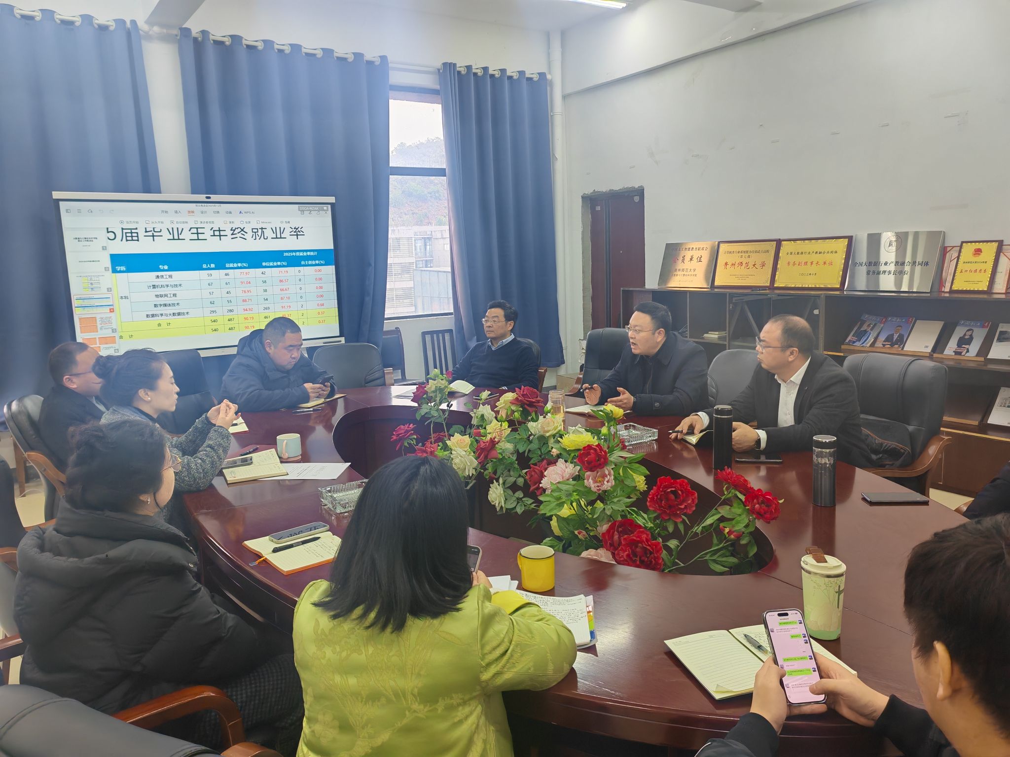 2025年12月10日上午,学院就业工作推进会在学院楼会议室召开。学院全体领导班子成员,各系主任及毕业班辅导员参会,共同研判就业形势,部署重点工作。